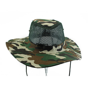 Sombreros de cubo con estampado personalizado, sombrero de pescador de camuflaje de ala ancha, gorra de cubo para exteriores de red transpirable para verano